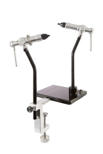 The new Snowbee Prestige Vice, sets new standards in quality, function & value for money! CNC machined from 6061 grade aircraft aluminium, the in-line 3600 rotating head allows for easy fly inspection & trimming. This facility can be locked, by means of the main head screw. The high-carbon steel jaws are hardened to Rockwell C 58-60 & can hold any size of hook firmly, right up to size 6/0 saltwater hooks. Operated by a simple one-operation cam-lever, for quick, easy hook placement. The tilt angle of the head is fully adjustable & a material spring is supplied as standard. Available in both a Clamp & Pedestal version, with either base available separately, as an optional extra. Supplied in a neat, zip-up case, with elasticated straps for all the components, plus tools in the lid and there is room for both bases, should you choose to buy both.
